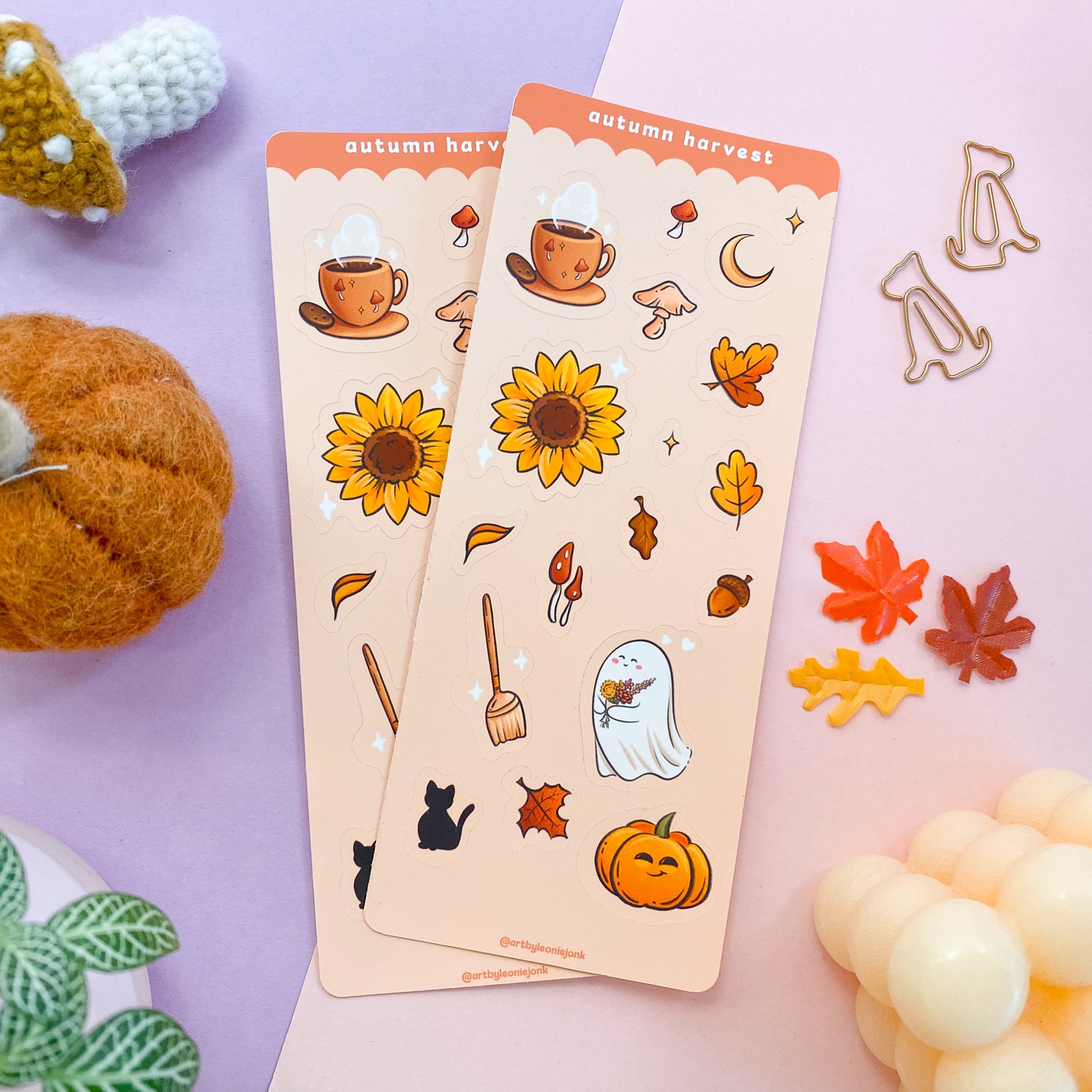 A stickersheet filled with cosy witchy fall things for all your Autumn needs. From black cats and ghosts to mushrooms, sunflowers and fall leaves. Add some cottage core to your journal or planner with these cuties ✨🌙