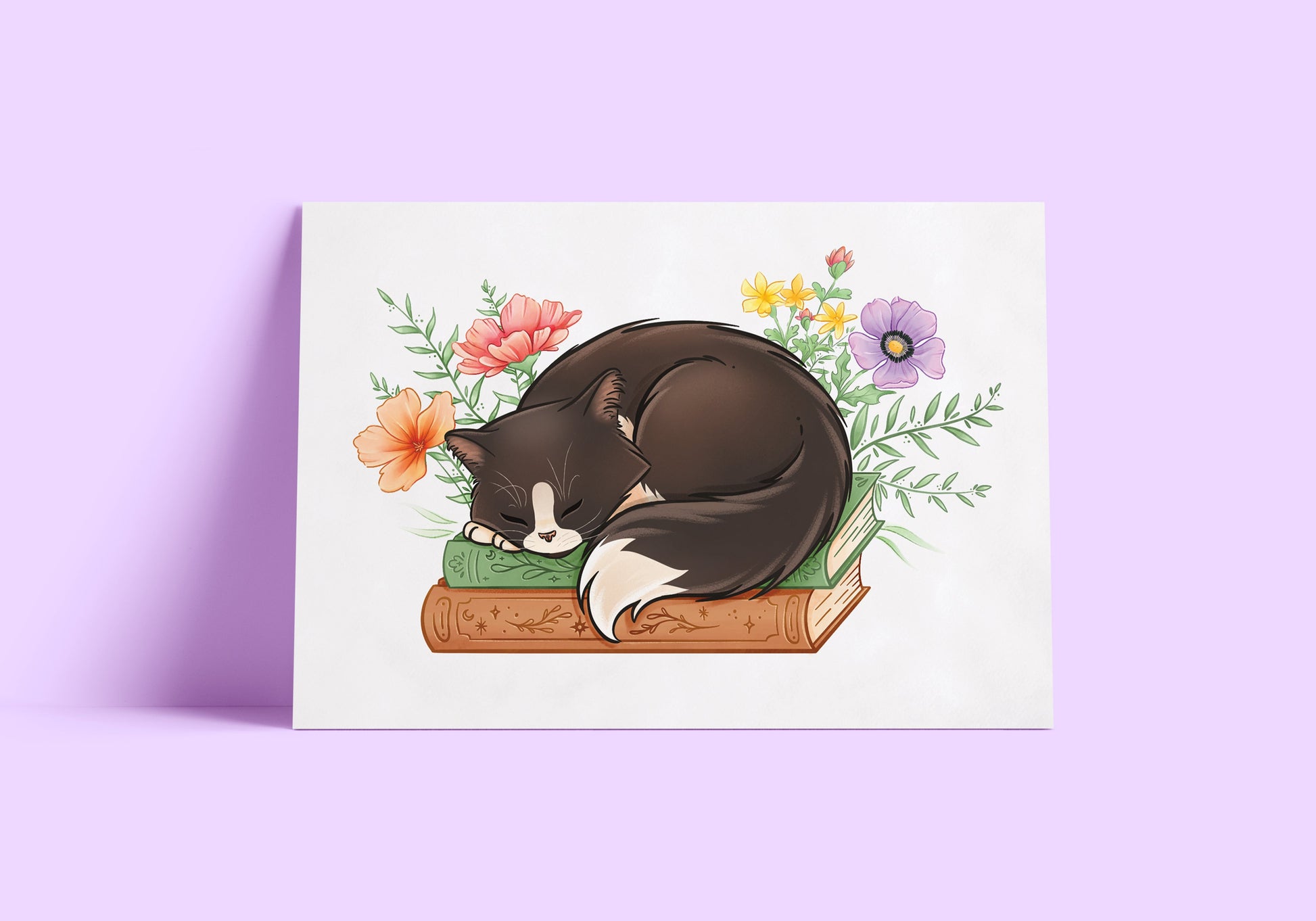 What's better than reading with a cat on your lap? Books and cats are always a perfect fit. Treat yourself to this print and bring your hobby & your familiar into your home! 📖🐱