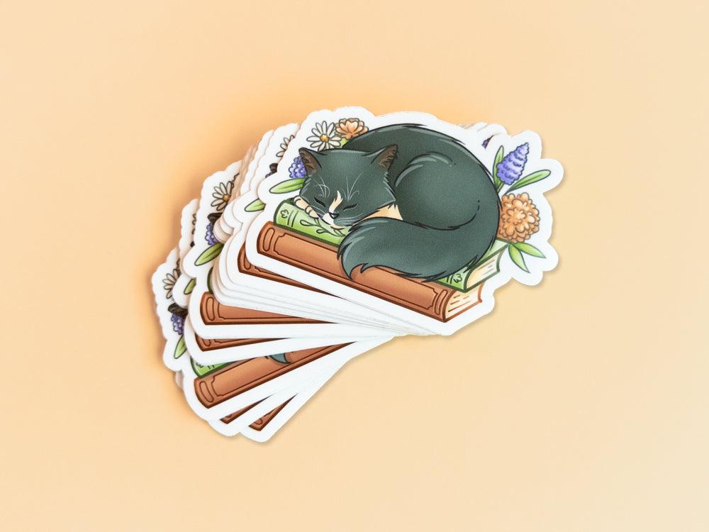 What's better than reading with a cat on your lap? Books and cats are always a perfect fit. Treat yourself to this sticker and bring your hobby & your familiar with you wherever you go! 📖🐱