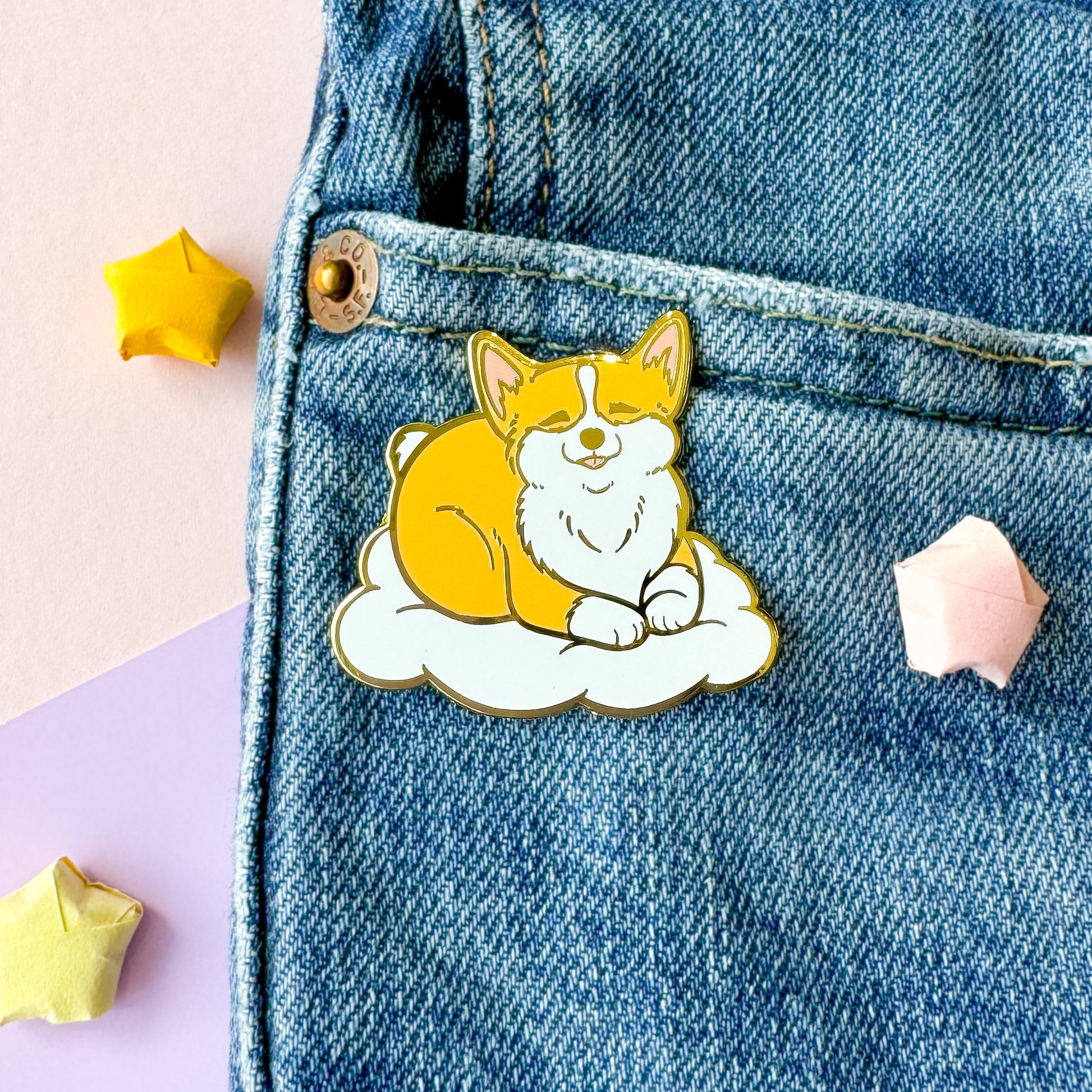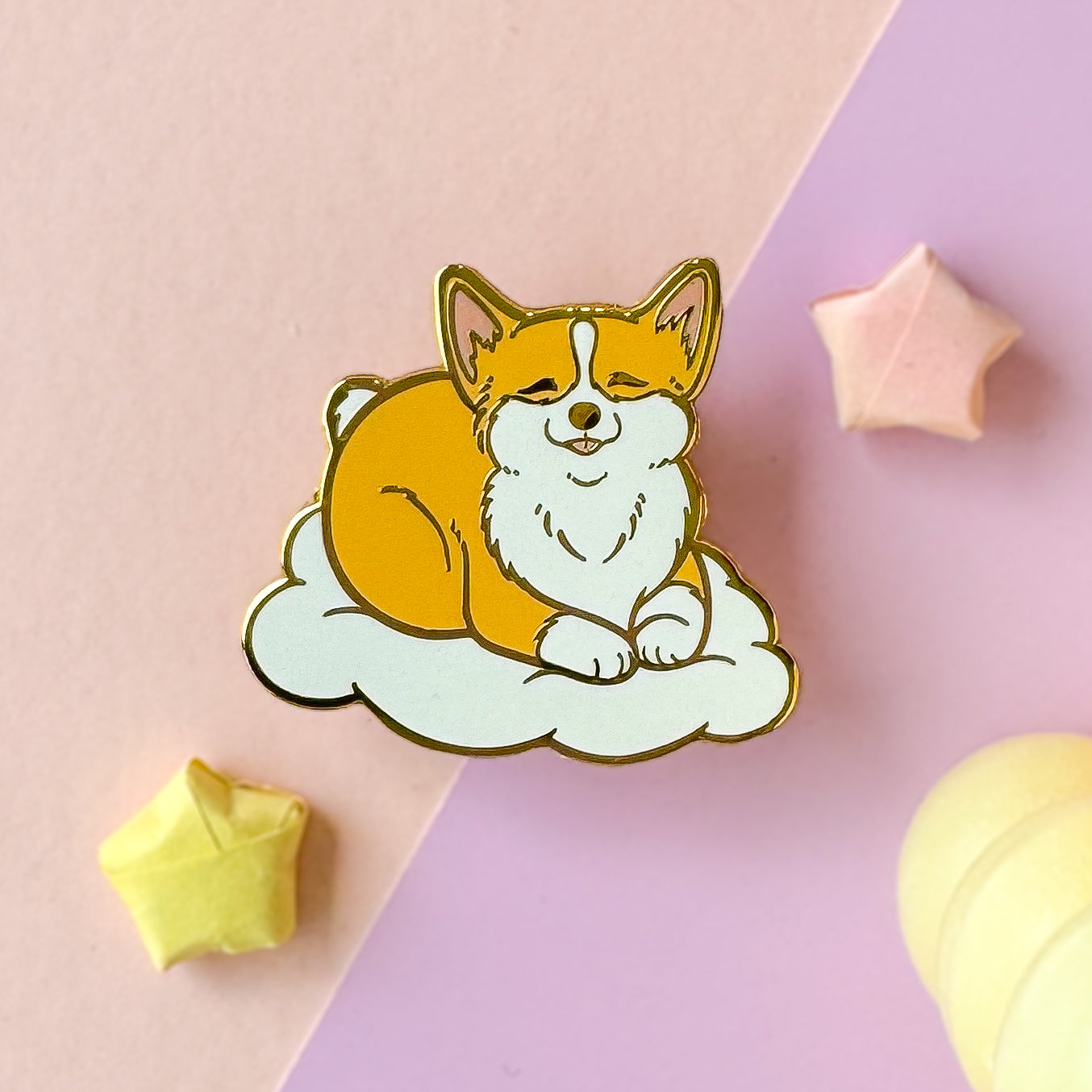 Comet is an adorable Corgi pin. He loves taking in the sights and would love to be shown off, adding that little extra sparkle wherever he's placed. This pin is high-quality, made from durable enamel.