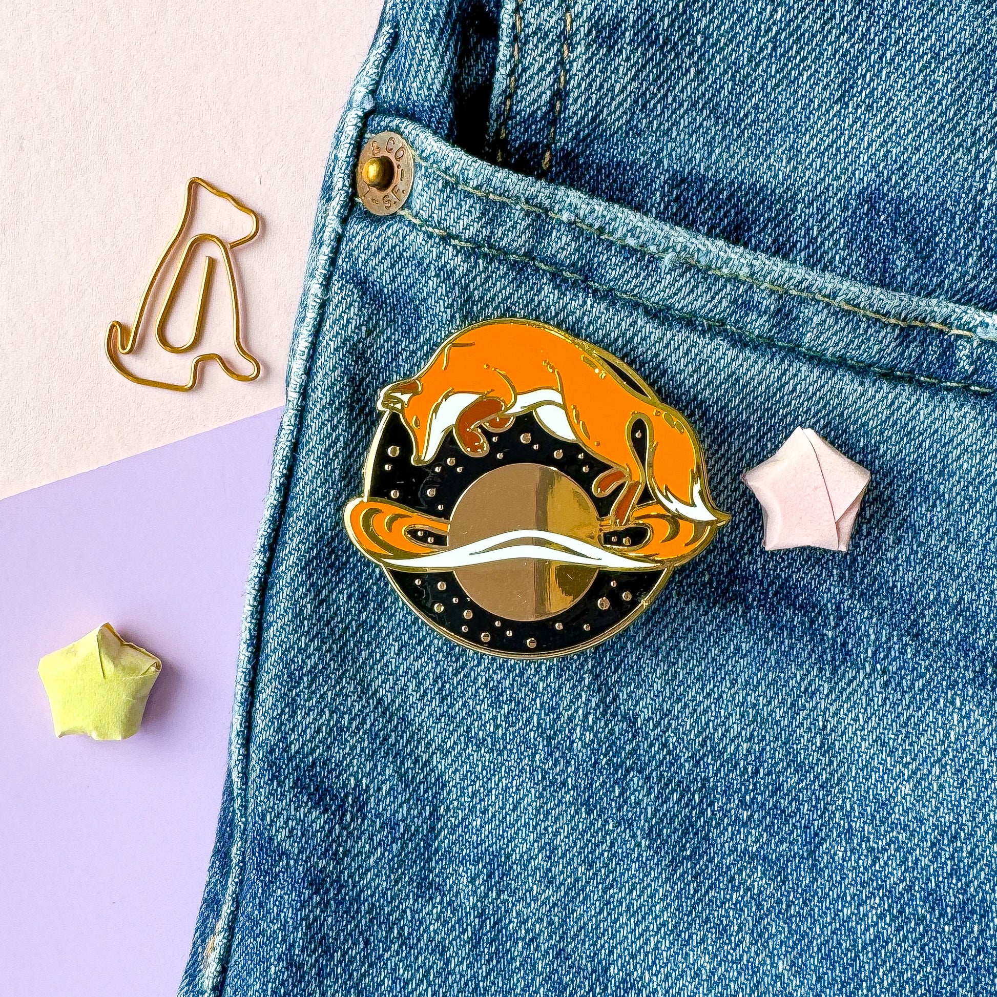 This fox and Saturn enamel pin makes a delightful gift for friends, family, or yourself! Pin it on your jacket, backpack, hat, or lapel to carry a bit of the wild and the cosmos with you wherever you go.
